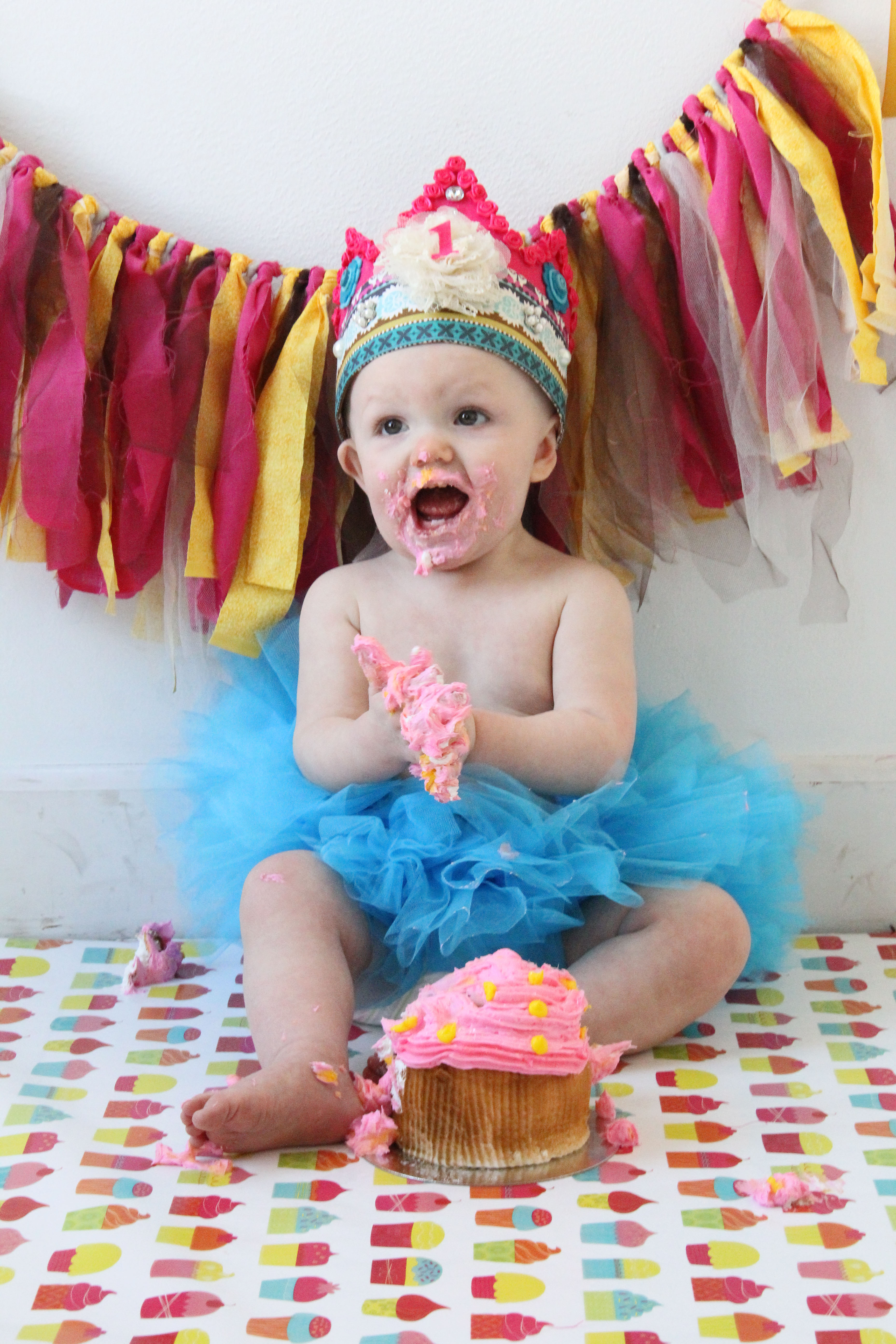 So, if you’ve never heard of a Cake Smash – you’re in for a treat! It’s exactly what it means – put your baby in front of a cake with minimal clothing and let them go to town! Some aren’t too sure about the flavor at first, some don’t like getting messy, some cry, but Miss Hava was a PRO!